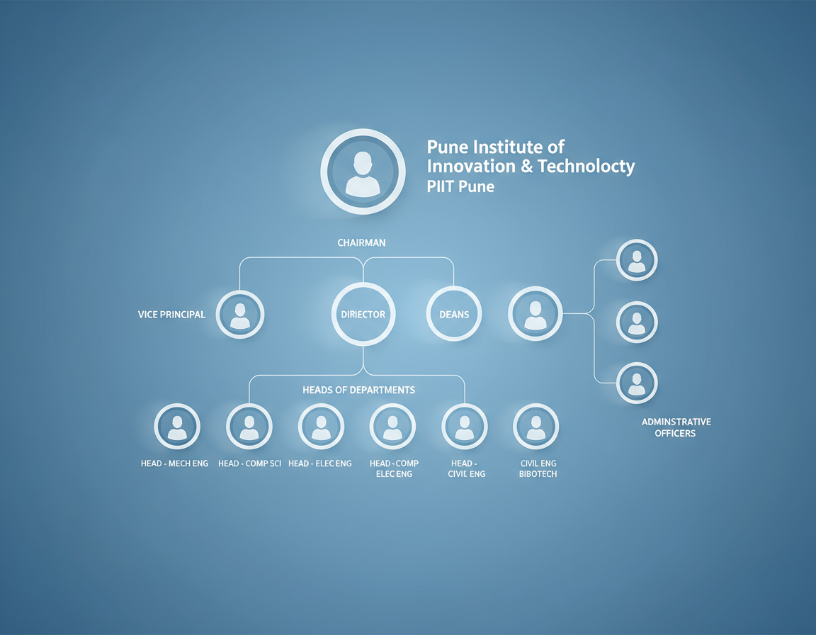 The organization chart visually represents the leadership hierarchy at PIIT Paud , detailing the academic and administrative reporting lines. This structure is designed to promote efficient governance, clear communication, and accountability across all functions of the institution.